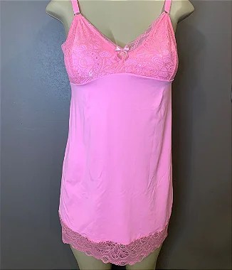 Camisola em poliéster e detalhes em renda, na cor rosa. Toque geladinho e renda macia,