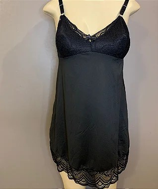 Camisola em poliéster e detalhes em renda, na cor preta. Toque geladinho e renda macia,